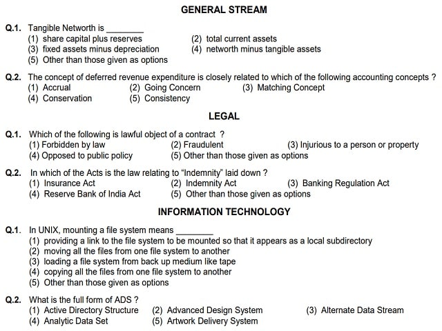 | Legal, Information Technology and Official Language stream: Multiple choice questions on Specialized subject related to stream. |