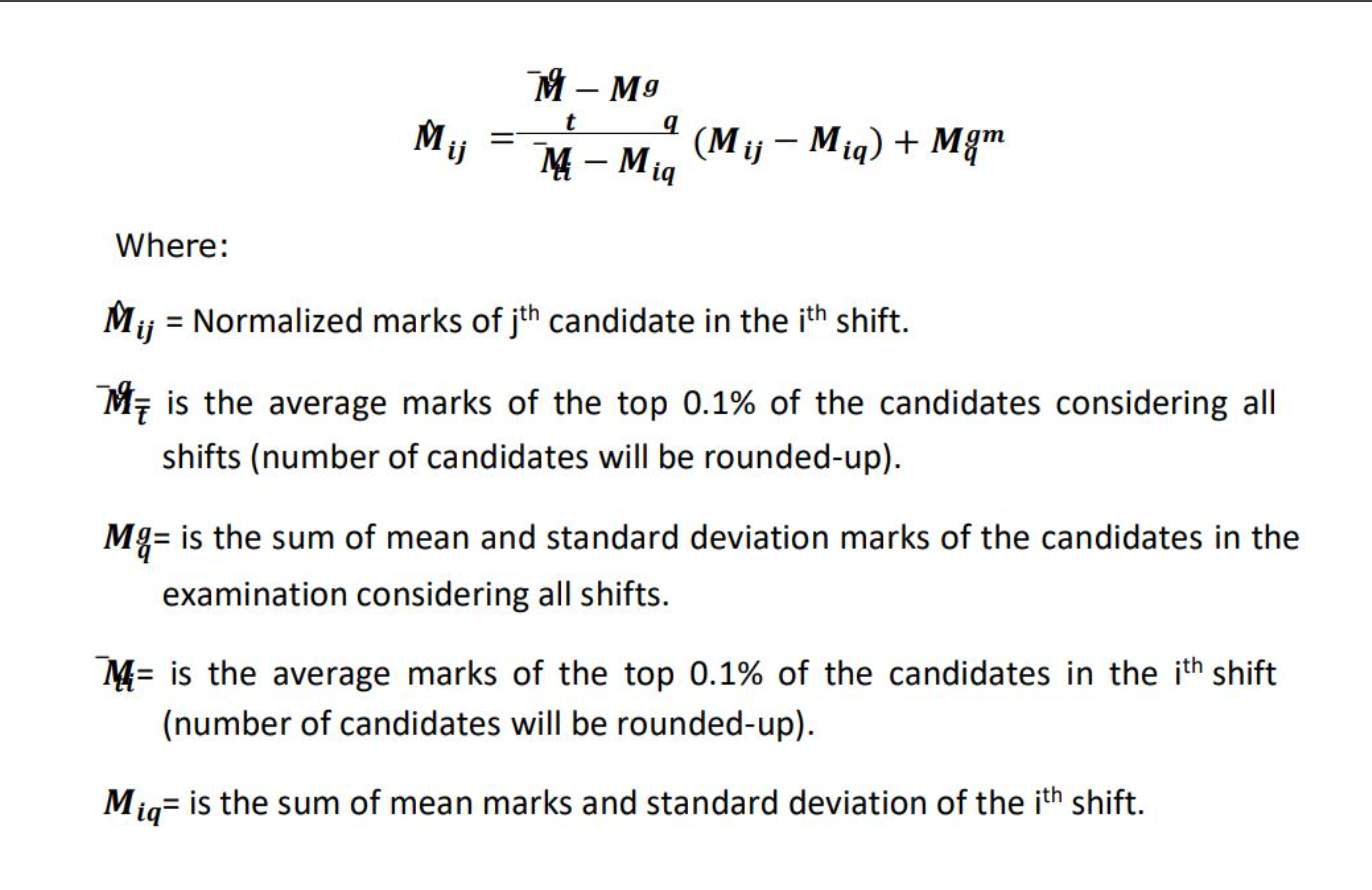 Candidates must note that raw marks refer to the actual marks scored by the candidate in the shift they appeared in. These are calculated based on the number of correct and incorrect answers. After the application of the normalization formula, these raw marks are converted into normalized marks, which are then used for:
