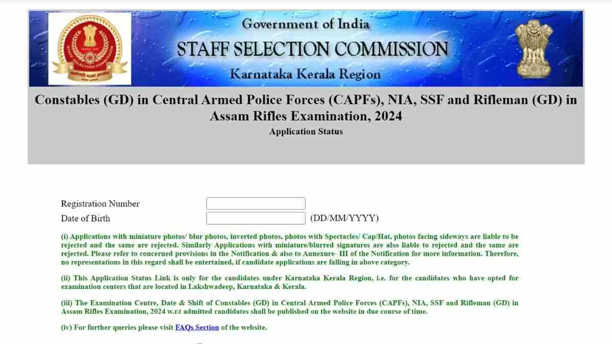 अभी लिंक केवल कर्नाटक केरल क्षेत्र के अंतर्गत आने वाले उम्मीदवारों के लिए है, यानी उन उम्मीदवारों के लिए जिन्होंने लक्षद्वीप, कर्नाटक और केरल में स्थित परीक्षा केंद्रों का विकल्प चुना है। अन्य क्षेत्रों के लिए आवेदन स्थिति लिंक शीघ्र ही उपलब्ध होंगे।