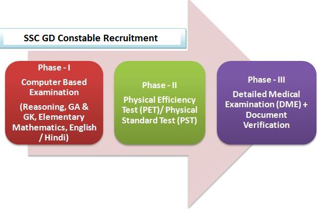 SSC GD Constable 2021 Recruitment Process will consist of a Computer Based Examination (CBE), Physical Efficiency Test (PET), Physical Standard Test (PST), and Detailed Medical Examination (DME)