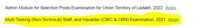 Step-1: Go to SSC Official website & Click on the link ‘Multi Tasking (Non-Technical) Staff, and Havaldar (CBIC & CBN) Examination, 2021’