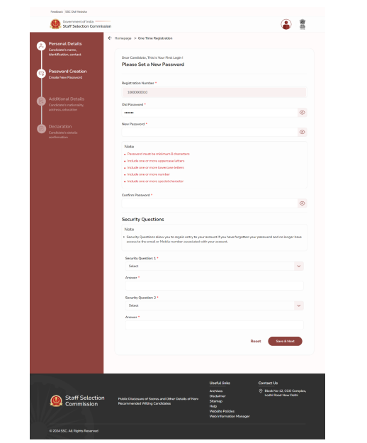 SSC ने 17 फरवरी, 2024 को एक नई वेबसाइट (https://ssc.gov.in/) लॉन्च की। पुरानी वेबसाइट (https://ssc.nic.in/) पर पिछले सभी पंजीकरण अमान्य हैं। आपको नई वेबसाइट पर फिर से पंजीकरण करना होगा। यह ओटीआर उन सभी उम्मीदवारों के लिए अनिवार्य है जो 2024 में आगामी एसएससी परीक्षाओं के लिए आवेदन करना चाहते हैं। आप एसएससी की वेबसाइट पर ऑनलाइन पंजीकरण कर सकते हैं। इस प्रक्रिया में आपके व्यक्तिगत विवरण भरना, पासवर्ड बनाना और दस्तावेज़ अपलोड करना (यदि आवश्यक हो) शामिल है।