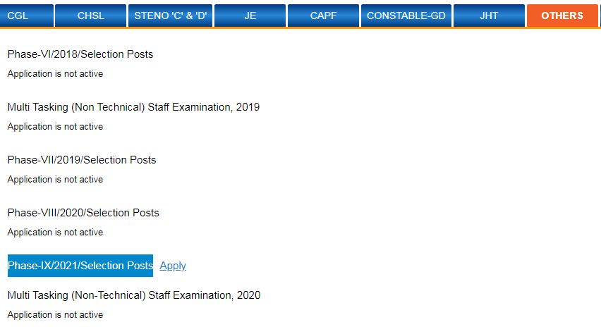 A new page will open and here candidates need to click on the link ‘Others’ which will take you to the Application Page of SSC Selection Posts Phase-9 2021 Recruitment:
