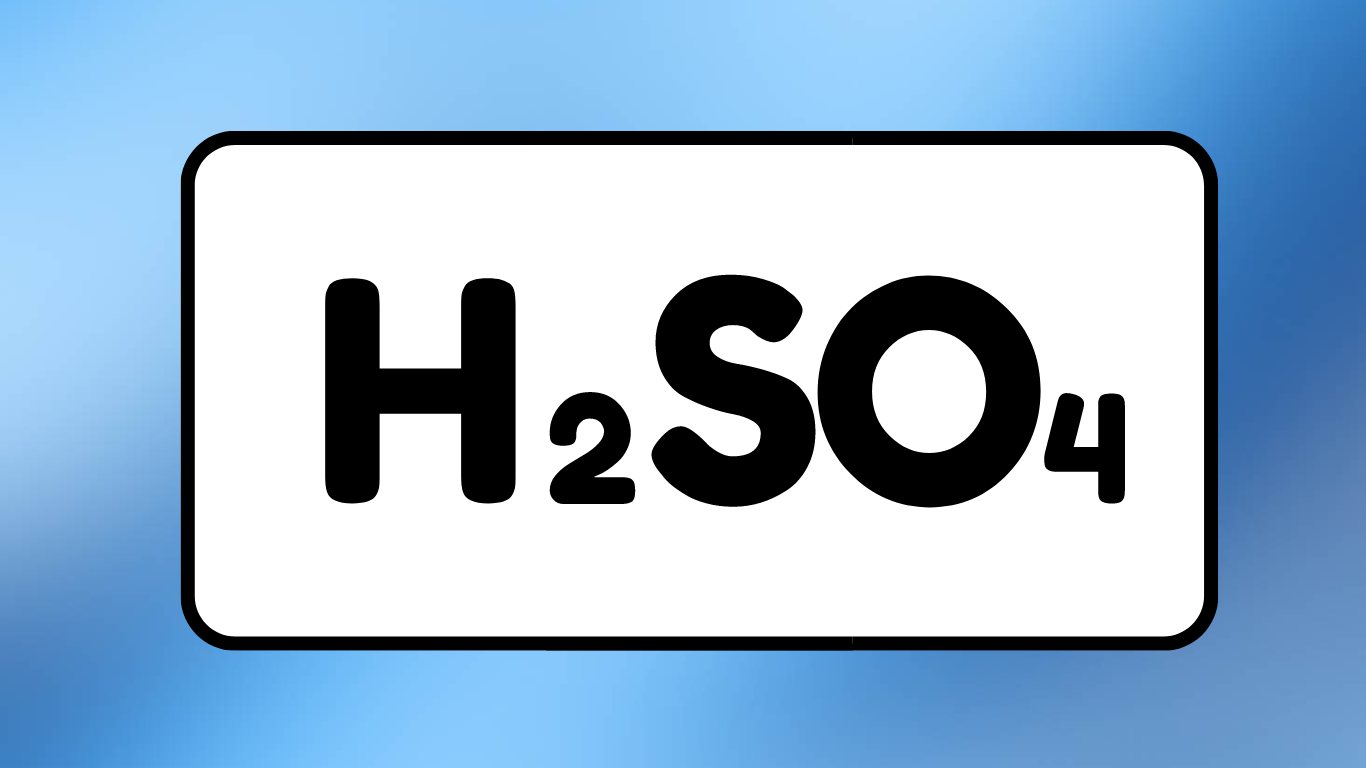 The chemical formula of Sulfuric acid is H2SO4. It's highly corrosive in nature with many industrial uses and commonly referred to as battery acid when diluted with water.