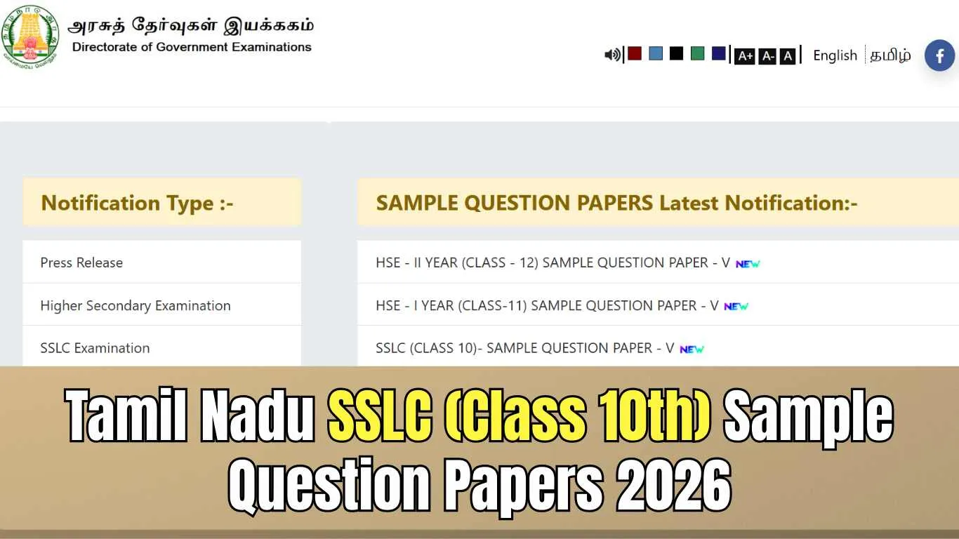 Tamil Nadu SSLC (Class 10th) Sample Question Papers 2026