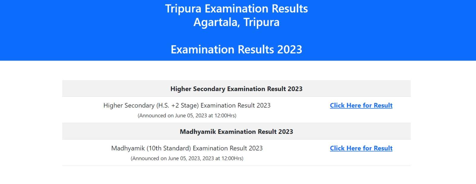 | Tripura Board 10th, 12th Result 2023 Time | Announced |