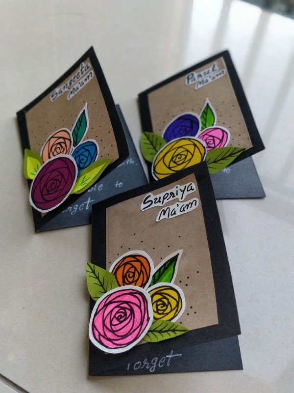 Take the help of your elders or YouTube to make cards with paper cutouts. Students can also use their favourite colour from their teachers to make them feel special.