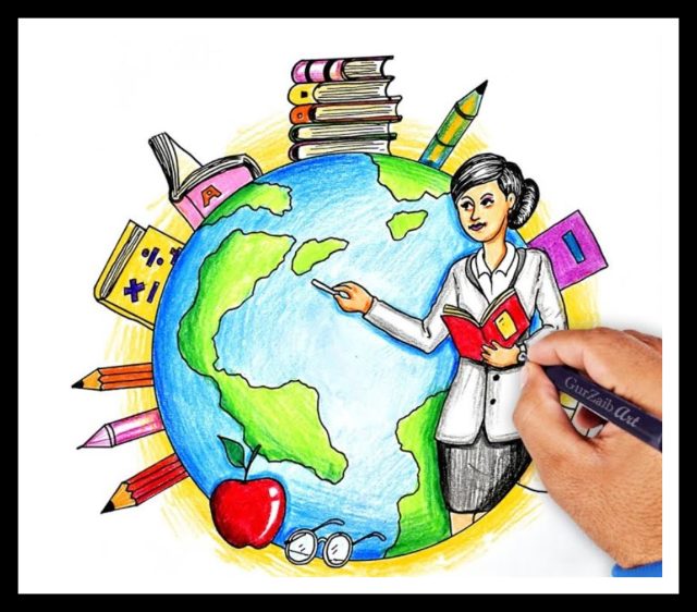 Below are the top 10 drawings and paintings for Teachers’ Day 2024. Explore some of the most beautiful poster drawings for kids and students: