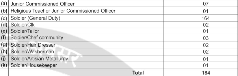 A total of 184 vacancies are to be filled through the recruitment drive including Soldier, Religious Teacher etc. Check the posts wise number of vacancies given below-