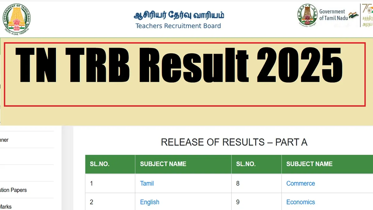 TN TRB Result 2025 Declared: The Tamil Nadu Teachers Recruitment Board (TN TRB) announced the TN TRB Result 2025 for the posts of Post Graduate Assistant and Physical Director Grade 1. The result has been declared in PDF format containing the subjects wise roll number of the candidates. Candidates can download the result after clicking the concerned subject link available at the official website-