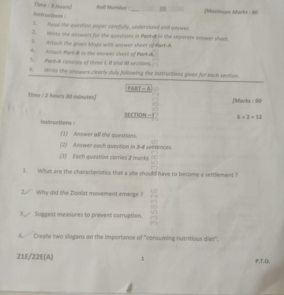 TS Class 10 Social Studies: Question Paper 2025