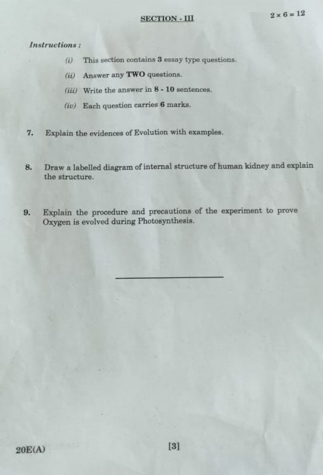 | Section III | 3 (7-9) | Essay Type Questions | 6 Marks |