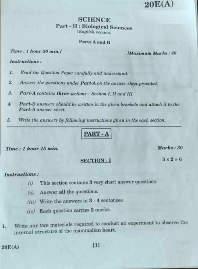 Telangana SSC 10th Class Biological Sciences Exam 2024 Highlights