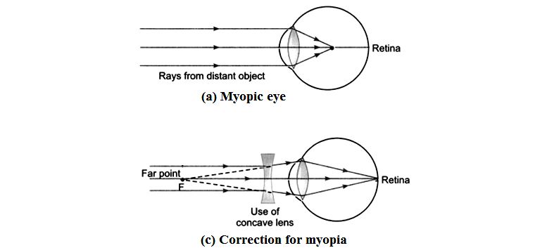 Answer: Diagrams showing Myopia and its correction are shown below: