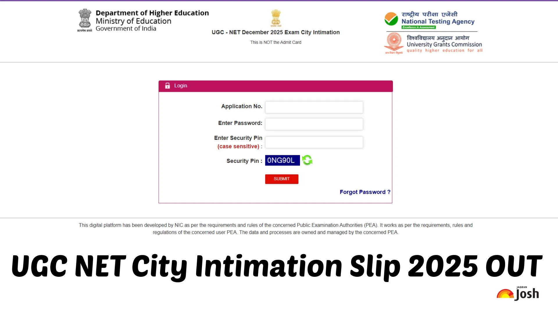 UGC NET City Intimation Slip 2025: यूजीसी नेट दिसंबर 2025 परीक्षा शेड्यूल