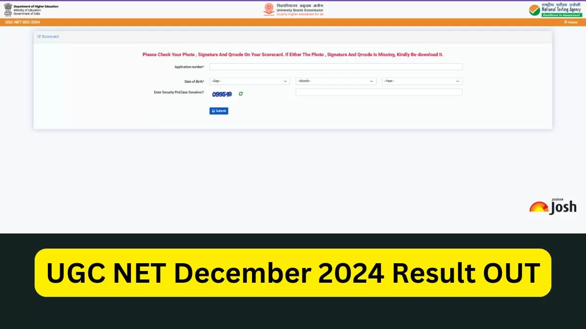 UGC NET December 2024 Result: नेशनल टेस्टिंग एजेंसी (NTA) ने आधिकारिक तौर पर यूनिवर्सिटी ग्रांट्स कमीशन नेशनल एलिजिबिलिटी टेस्ट (UGC NET) दिसंबर 2024 सत्र के नतीजों की घोषणा कर दी है। परीक्षा में शामिल होने वाले उम्मीदवार अब आधिकारिक वेबसाइट ugcnet.nta.ac.in पर अपने स्कोरकार्ड देख सकते हैं। रिजल्ट और स्कोरकार्ड लिंक अब आधिकारिक वेबसाइट पर विषयवार कटऑफ अंकों (subject wise cutoff mark) के साथ उपलब्ध हैं। स्कोरकार्ड में दिसंबर परीक्षा के लिए श्रेणीवार अंक (category wise marks) भी शामिल किए गए हैं।