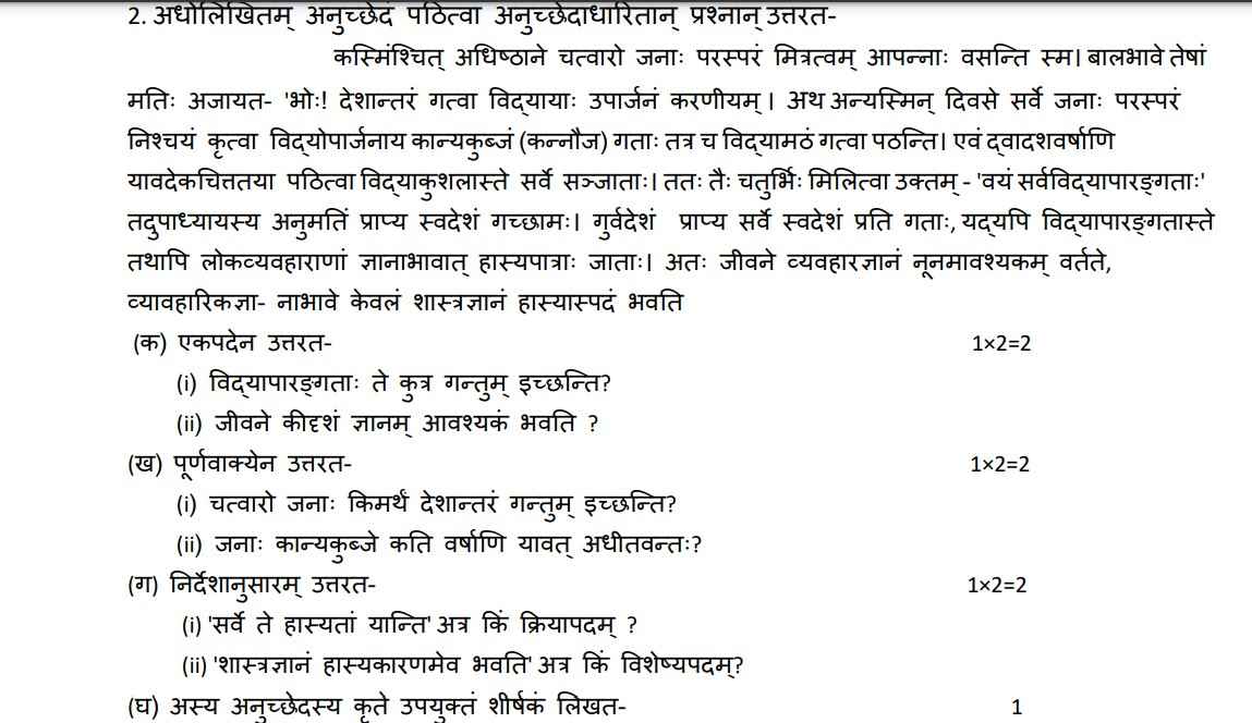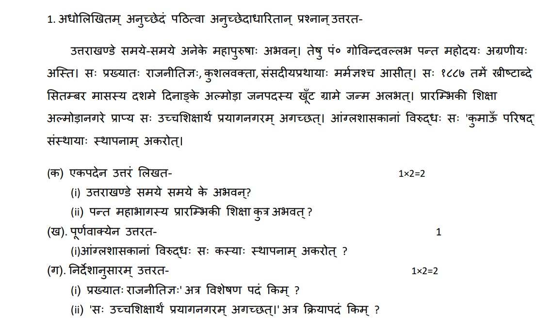 The UK Board sample papers are an important resource as they help students to understand the question paper pattern and marking scheme. Check the images from the UK Board Class 10 Sanskrit Model Paper.