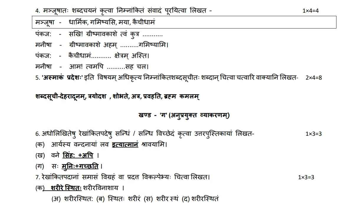 UK Board Class 10 Sanskrit Model Paper 2024-25