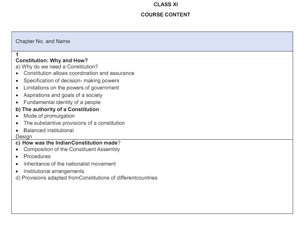 UK Board Class 11 Political Science Course Structure
