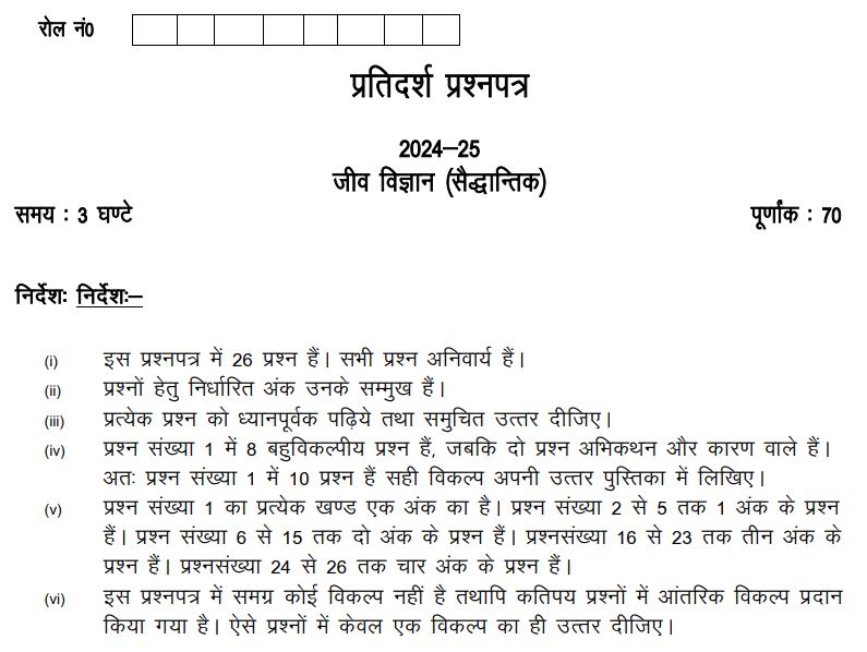 Below is a link to the UK Board Class 12 Biology model paper set 1. Another set is also provided for students to download and practice. These papers are specifically designed for the 2024-25 academic year and aim to help students gain confidence before the final exams.