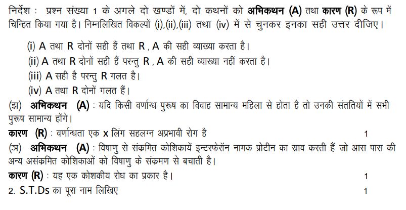 | Section A | 1 (2 parts) | Assertion and Reason-Based Questions | 1 mark each | 2 marks | No choice |
