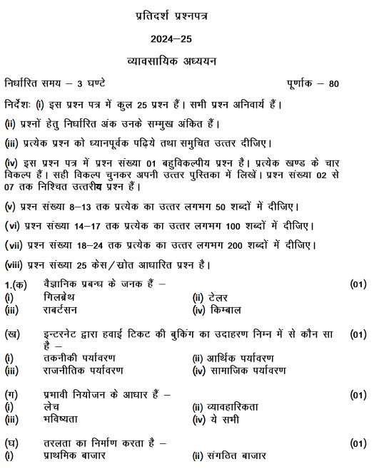 | Download UK Board Class 12 Business Studies Model Paper 2025 PDF |