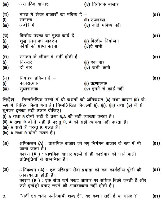 UK Board 12th Business Studies Question Paper Format 2024-25