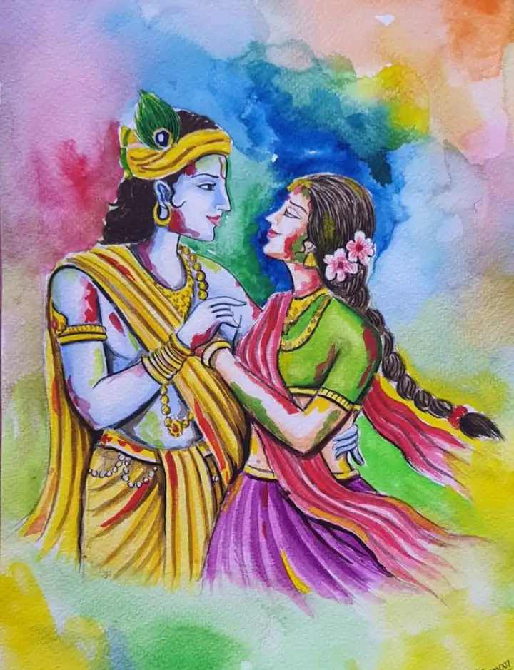 Drawing 7: The colors of Holi reflect the divine love of Radha and Krishna, filling the world with joy and devotion