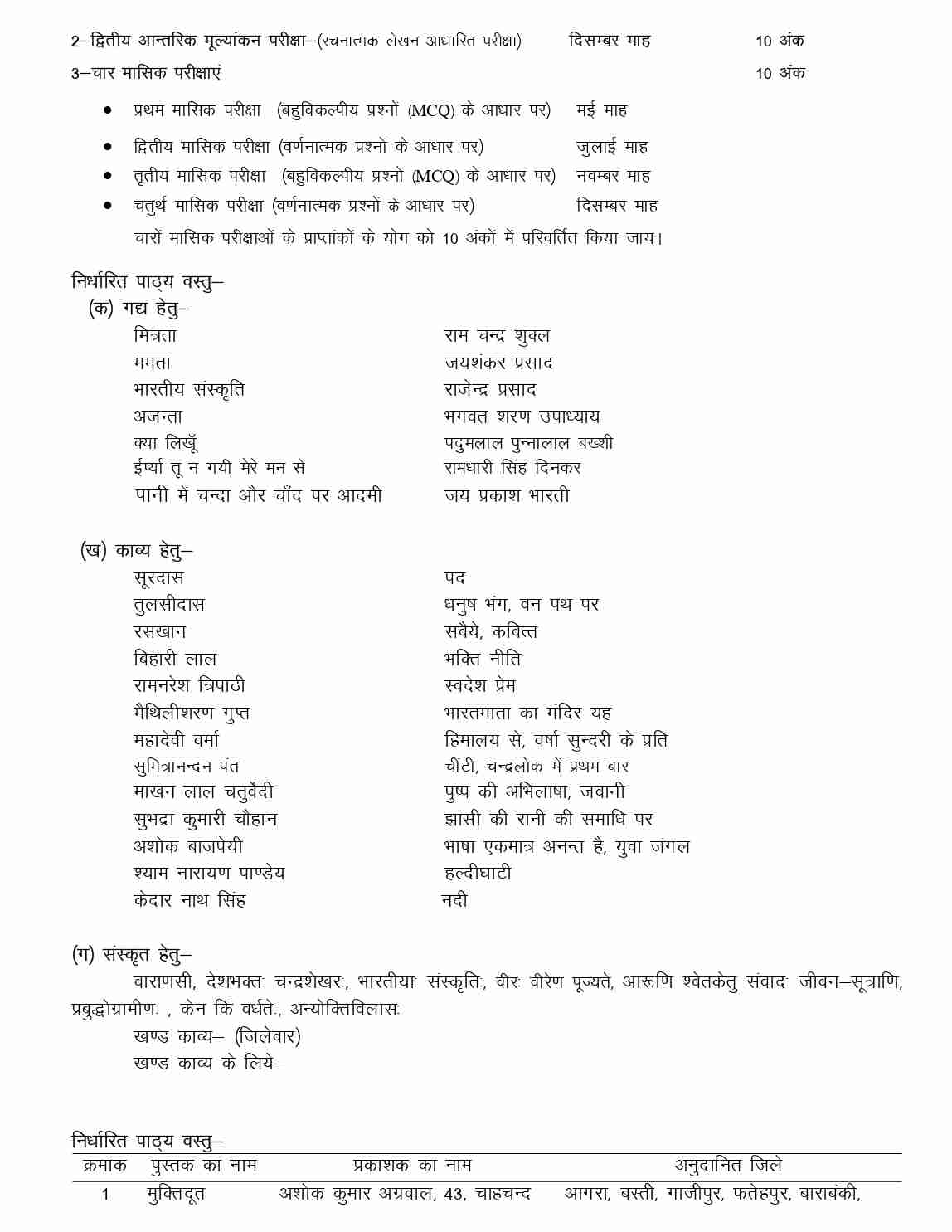 Download UP Board Class 10 Hindi Syllabus 2024-25 PDF