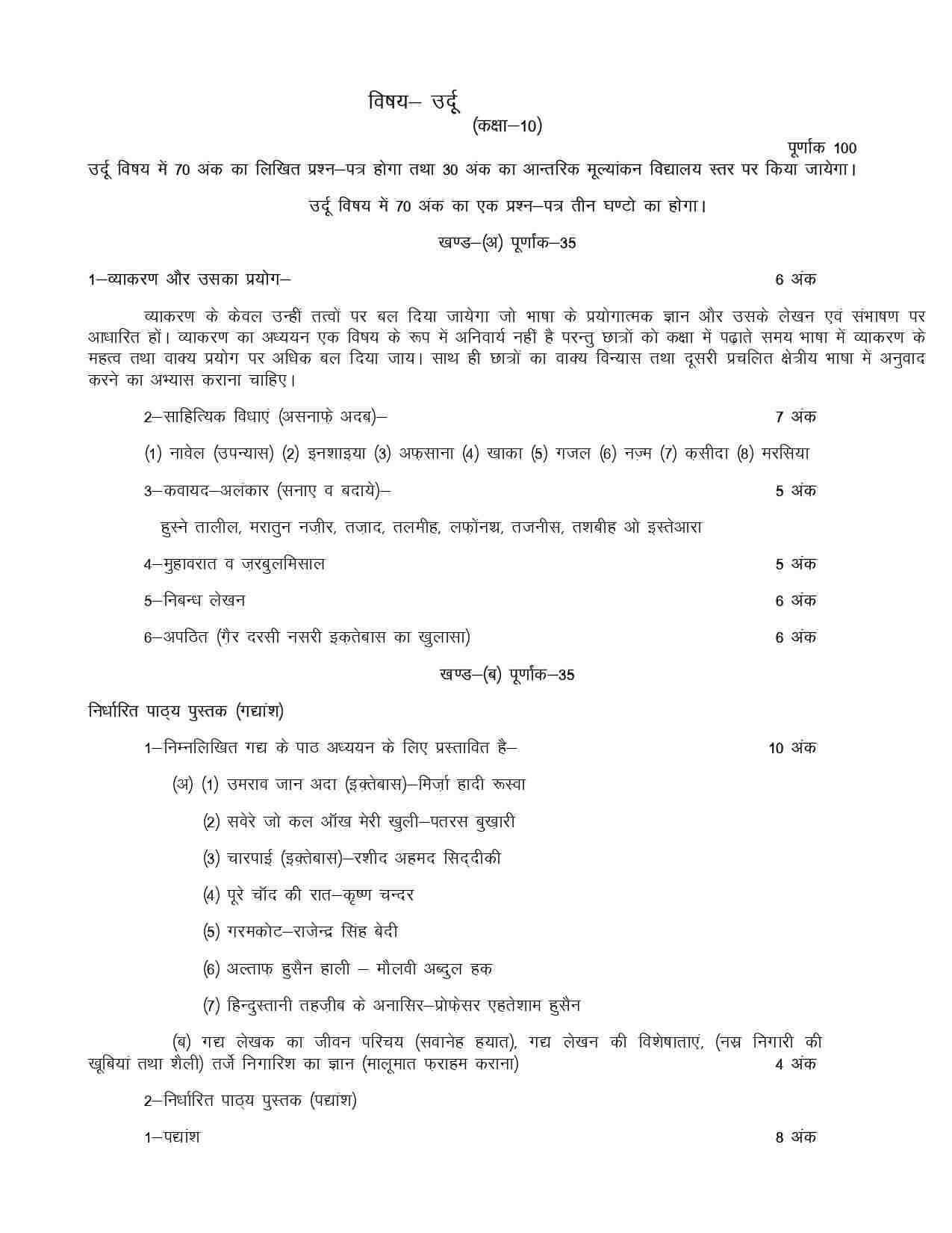 Download UP Board Class 10 Urdu Syllabus 2024-25 PDF