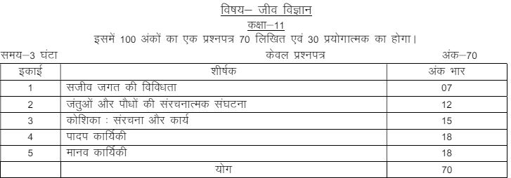 UP Board Class 11 Biology Exam Pattern 2024-2025