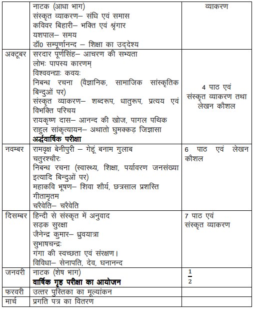 UP Board Class 11 Hindi Monthly Syllabus Division