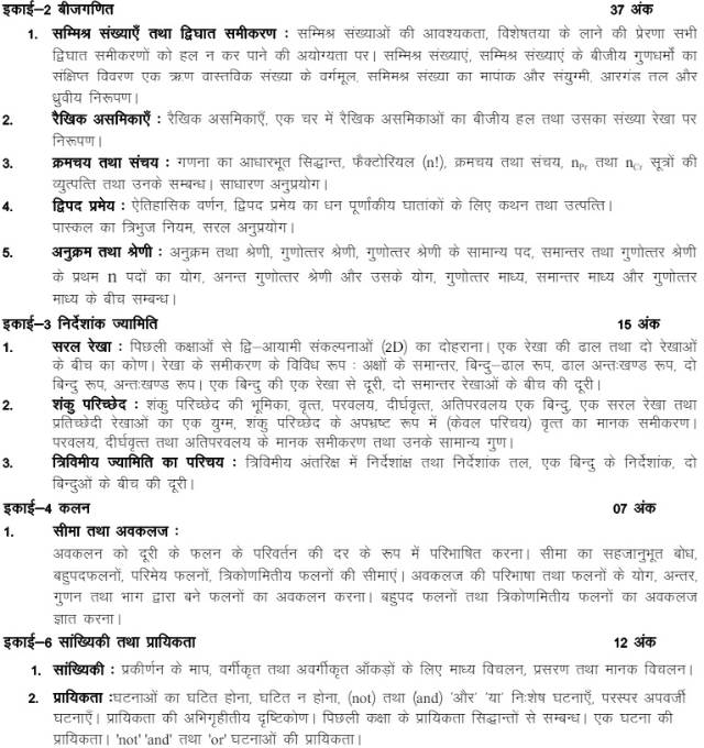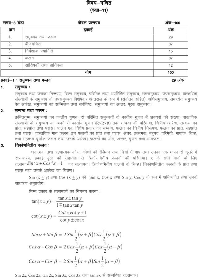 UP Board Class 11 Maths Syllabus 2024-2025