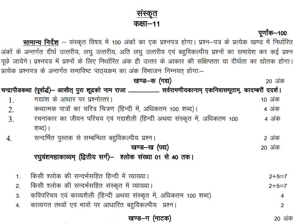 UP Board Class 11 Sanskrit Syllabus 2023-24