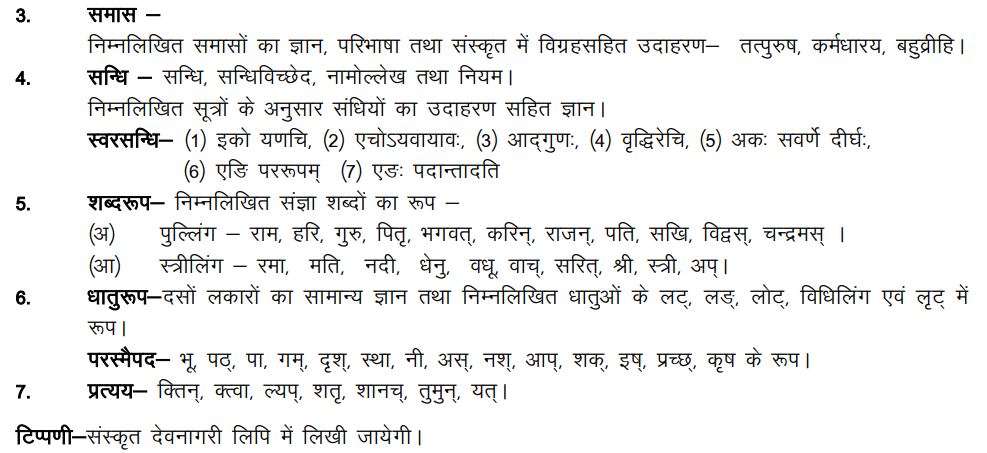 There will be one question paper of 100 marks in the Sanskrit subject. In each section of the question paper, many questions will be asked including long answers, short answers, very short answers, and multiple-choice questions under the prescribed marks. The marks assigned to the questions in the question paper will only be indicative of the briefness or length of the answer size.