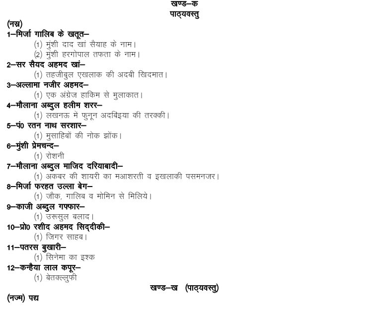 UP Board Class 11 Urdu Syllabus 2024-25