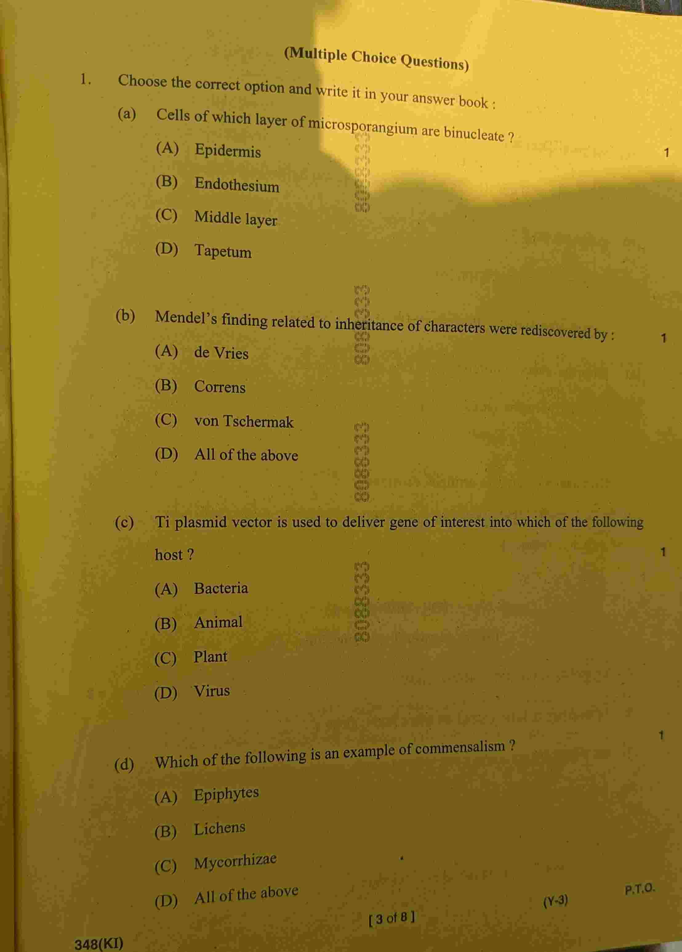 1. (a) Cells of which layer of microsporangium are binucleate?