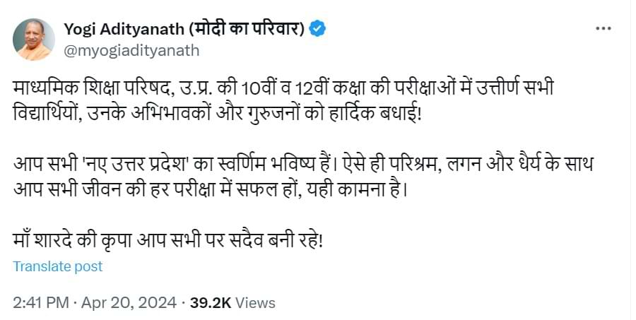सीएम योगी ने छात्रों को दी बधाई: