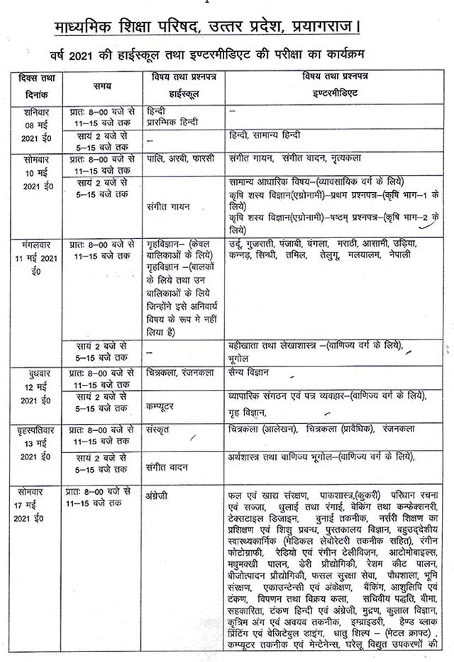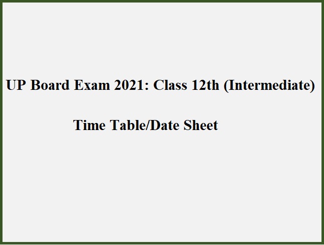 New UP Board 12th Date Sheet 2021: UP Board Intermediate (12th) Exam Time Table 2021 (Coming Soon):