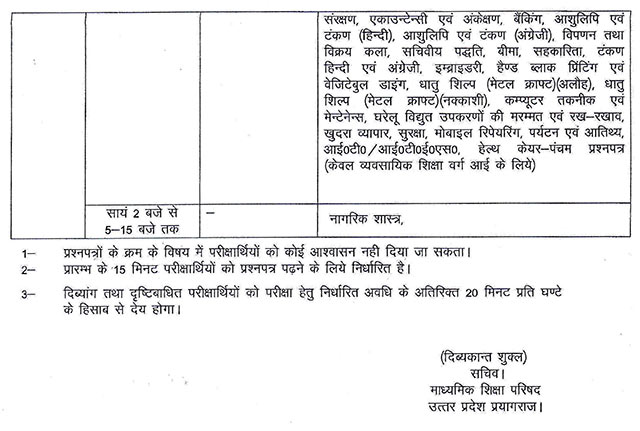 Previous year UP Board Intermediate Date Sheet or Time Table is also available here for reference.