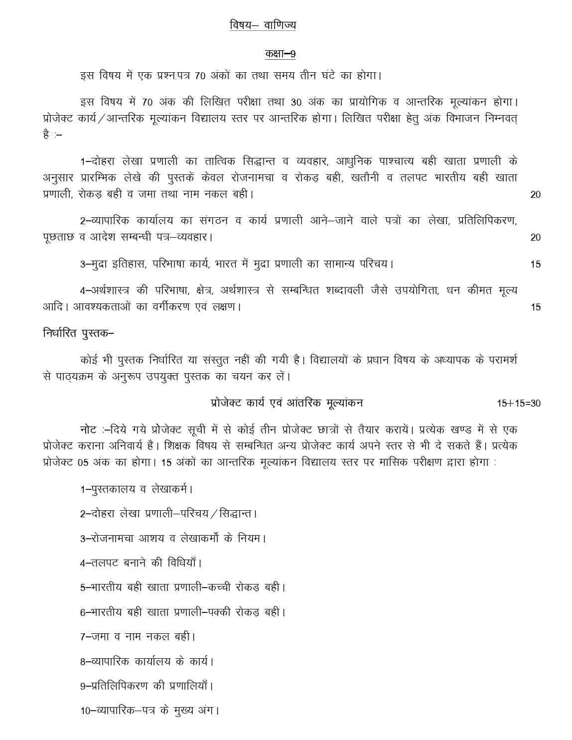 UP Board Class 9 Commerce Syllabus 2024-25