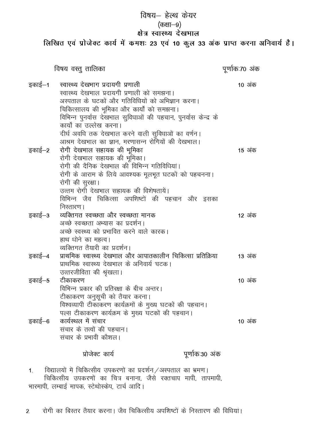 Download UP Board Class 9 Health Care Syllabus 2024-25 PDF