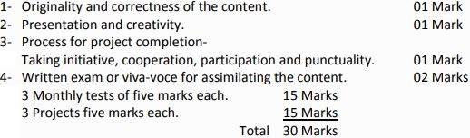 Project Work: It’s teacher’s discretion to allot any 3 projects (5 marks each) from the syllabus to students.