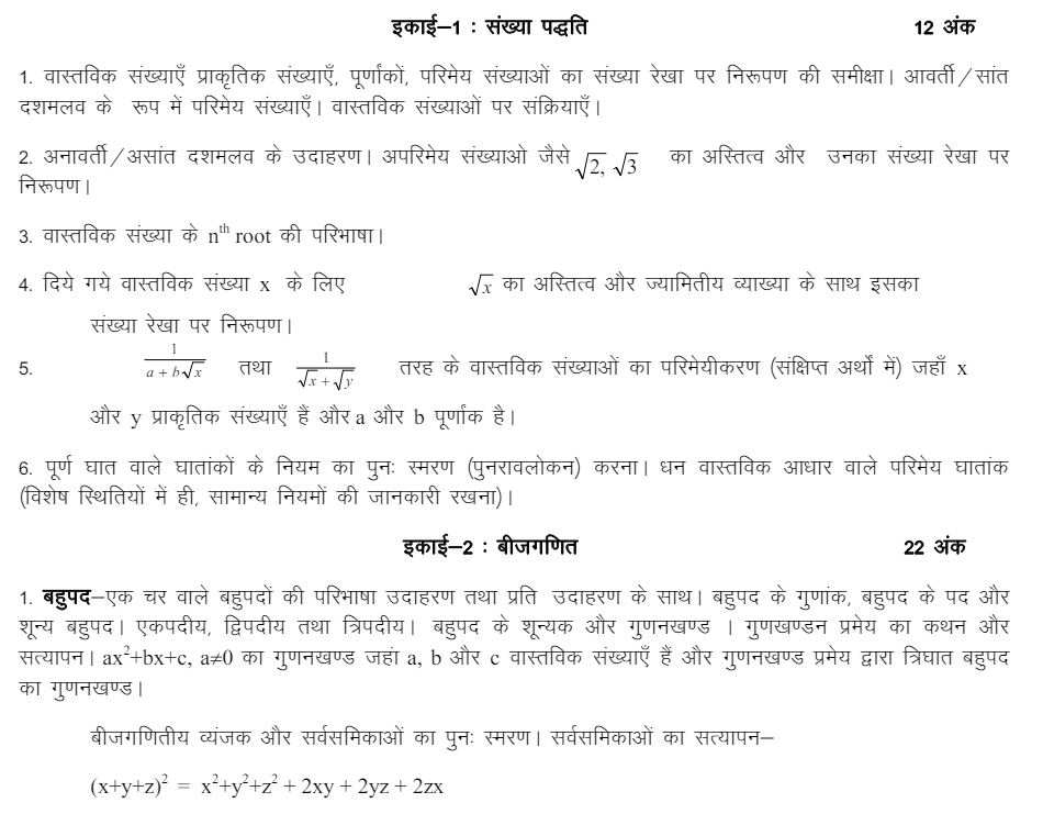 Check the UPMSP Class 9 Maths Syllabus 2024-2025 in the following table, followed by a PDF download link of the same.
