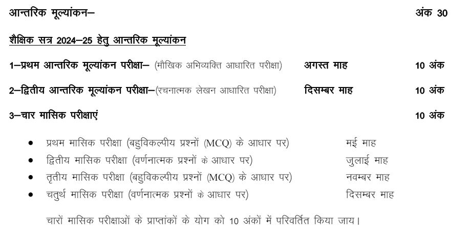 The marking scheme for UP Board Class 9th Sanskrit has been provided below. Check the list of assessment types and their marks weightage in the overall evaluation scheme.