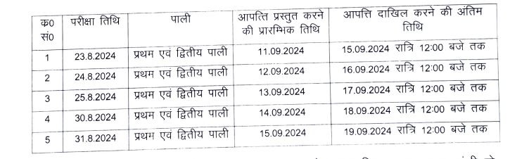 Candidates find any discrepancy regarding any question or answer option or answer key, then they register the objection online along with relevant documents/information. To lodge an objection, candidates will have to go to the link available on the board's website and login with the help of their registration number, date of birth and question booklet number. The candidates can raise objection as per the given schedule.
