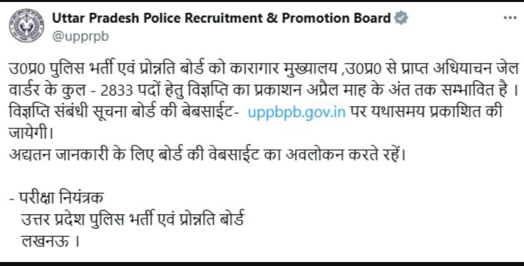 UPPRPB has announced 2833 vacancies for Jail Warder post. However, the category-wise breakdown will be mentioned in the detailed notification, scheduled to be released in April 2025.