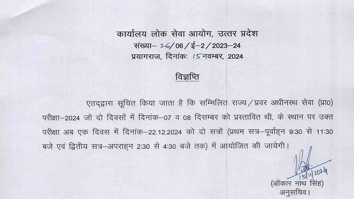 The Commission has decided to conduct the prelims exam on December 22, 2024 across the state. Earlier the Commission has canceled the prelims exam schedule for Provincial Civil Services (PCS) Prelims 2024 and RO ARO after massive agitation by the candidates to conduct the exam in single shifts.