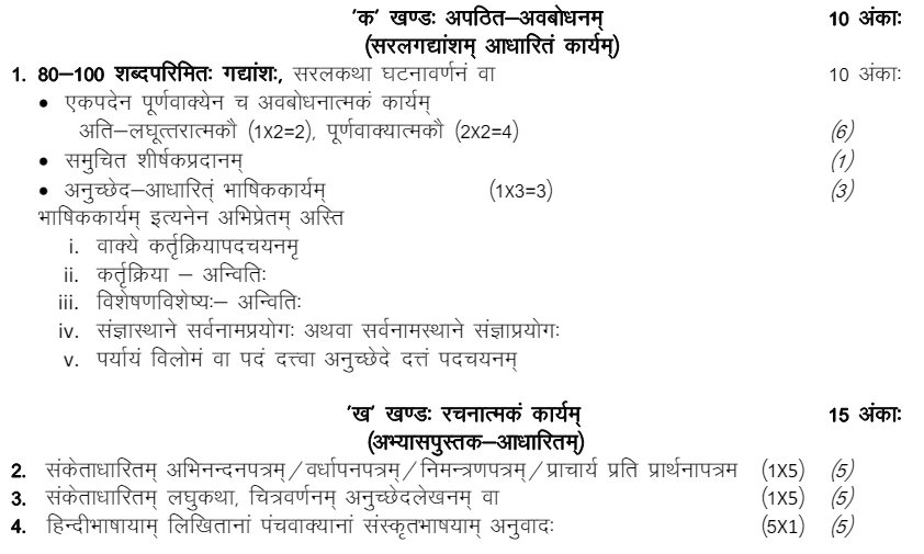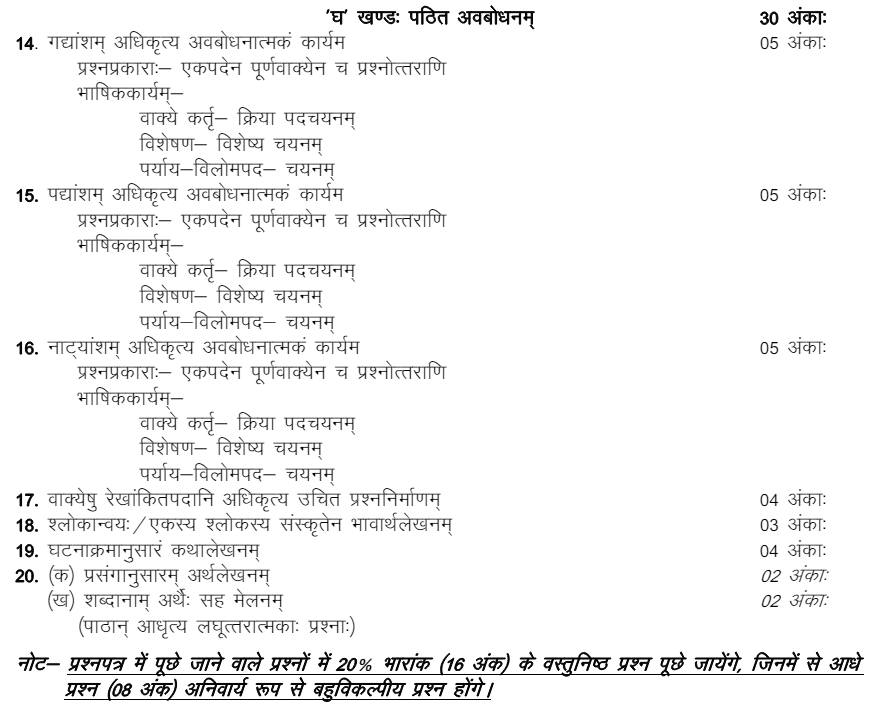 UBSE Class 9 Sanskrit Course Structure 2024-25