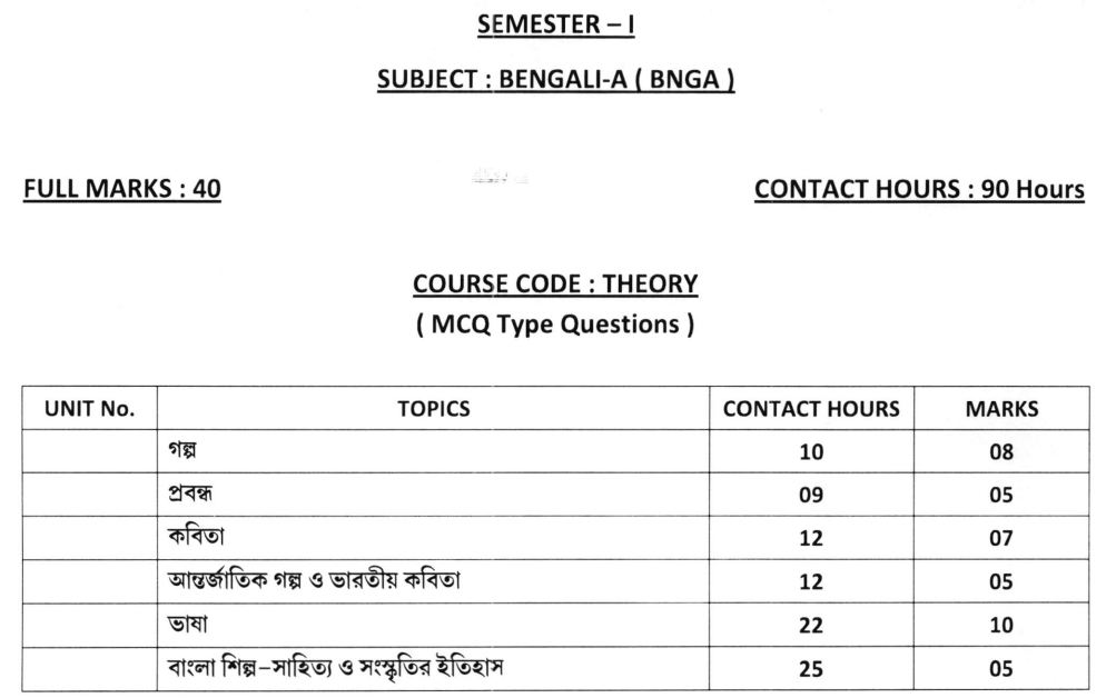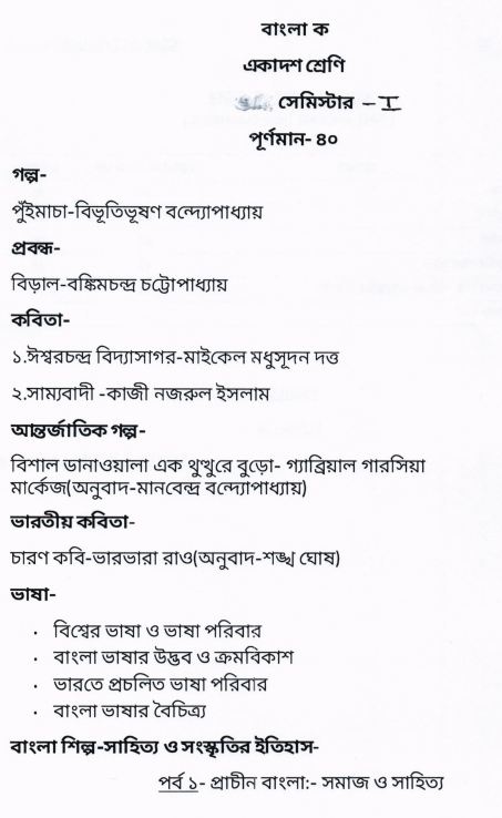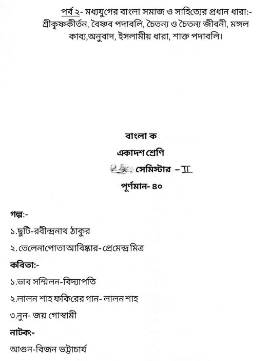 West Bengal HS Class 11 Bengali A Syllabus 2024-25